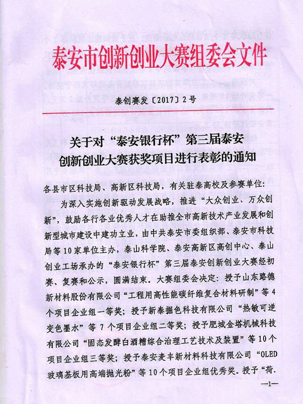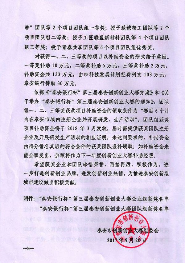 公司榮獲“泰安銀行杯”第三屆泰安創(chuàng)新創(chuàng)業(yè)大賽優(yōu)秀獎(jiǎng)
